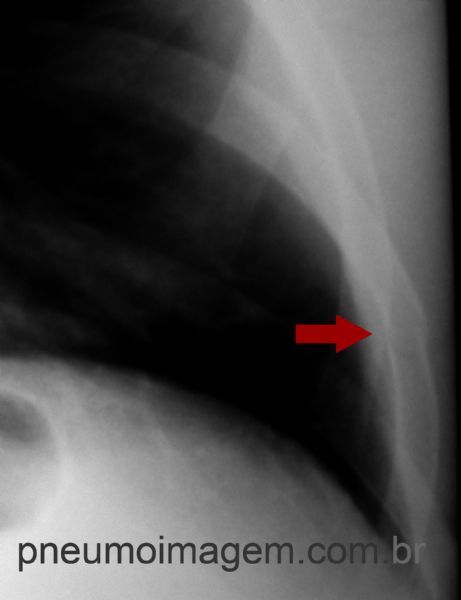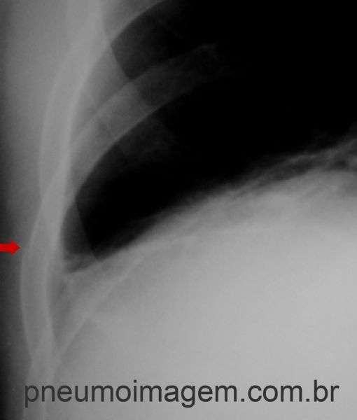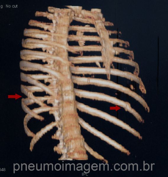 Este paciente asmático de 47 anos apresenta-se com muita dor torácica após crise de tosse. Você consegue identificar nesta radiografia as fraturas de arcos costais presentes como complicação da tosse?