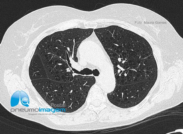 Após o tratamento e a resolução da infecção, pode-se observar as áreas de enfisema centrolobular e que claramente não há doença intersticial pulmonar.