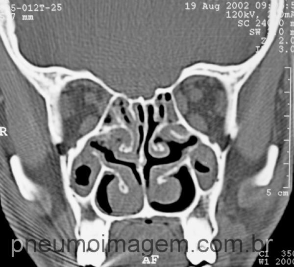 Síndrome de Kartagener. Inversão visceral (dextrocardia), bronquiectasias e sinusite.